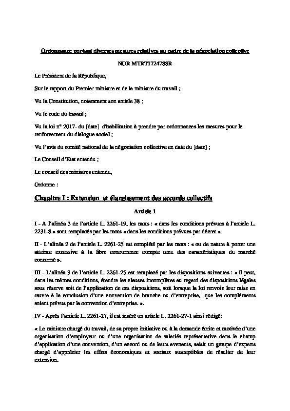 Ordonnance du 22 septembre 2017 - Diverses mesures relatives au cadre de la négociation collective
